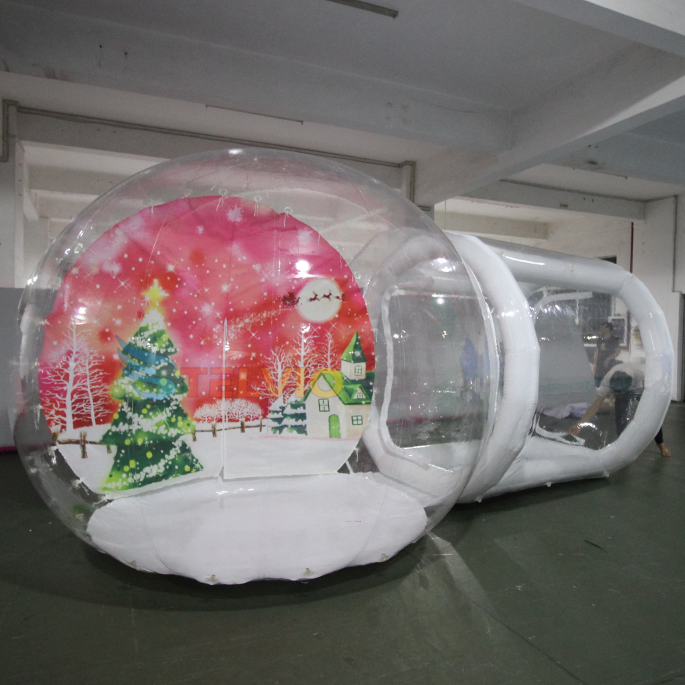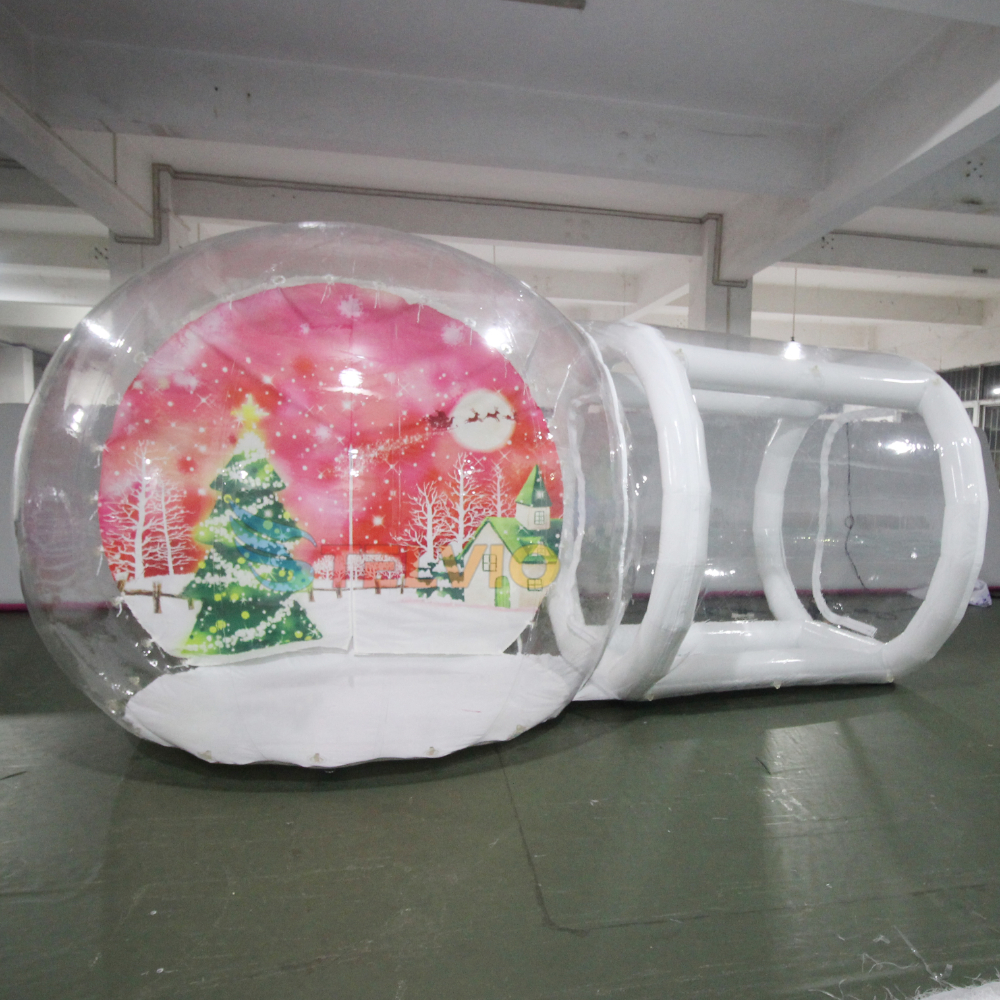 Inflatable Snow Globe clear Ball with Entrance Tunnel in Human Size for Christmas Party Photo and Decoration
