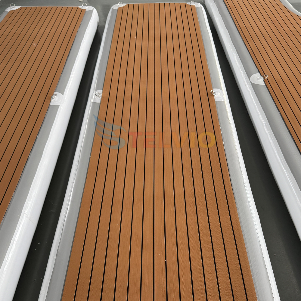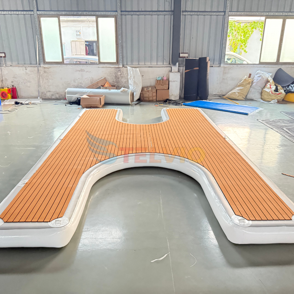 Drop Stitch Inflatable Teak Floating Island Platform PVC Water Dock C U Seabobs Pontoon Dock for Jet Ski Motorboat SUP Board