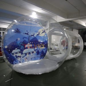 Christmas Decoration Inflatable Snow Globe Transparent Bubble Tent with Printed Background Blower and Pump